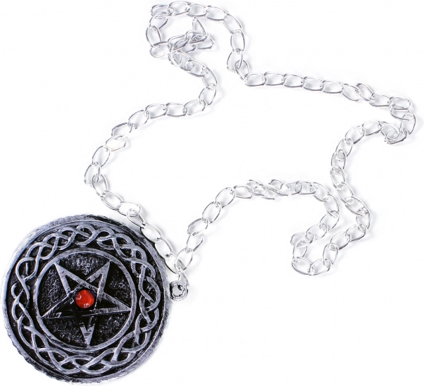 Srebrny wisiorek z pentagramem i detalicznym celtyckim wzorem nada kostiumowi tajemniczego, stylowego akcentu.