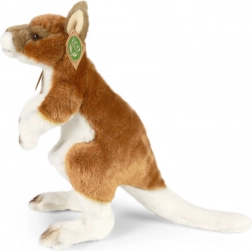 Eco‑friendly wypełnienie z recyklowanych butelek PET gwarantuje troskę o środowisko, przy jednoczesnym zachowaniu najwyższego poziomu miękkości i komfortu. Kangur stoi wyprostowany, ma charakterystyczny ogon i uszka, co podkreśla jego wierne odwzorowanie.