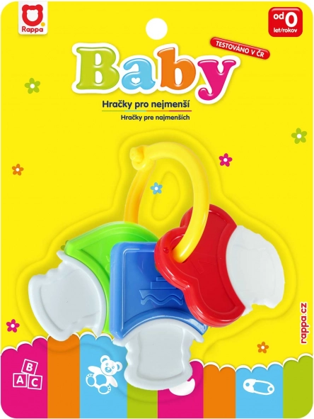 Kolorowa grzechotka i gryzak w kształcie kluczy dla niemowląt. Wspiera motorykę, wzrok i przynosi ulgę podczas wyrzynania się ząbków. Lekka i bezpieczna konstrukcja.