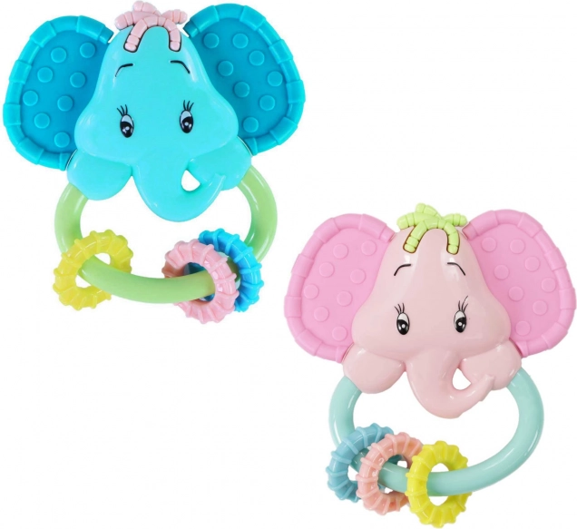 Ta kolorowa grzechotka/gryzak w kształcie słonia to idealna pierwsza zabawka dla najmłodszych. Teksturowane uszy i kółeczka przynoszą ulgę podczas ząbkowania, a subtelne grzechotanie bawi i rozwija umiejętności słuchowe oraz dotykowe.