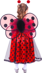 Zestaw zawiera wszystko, co potrzebne - sukienkę, skrzydła i opaskę dla pełnej przemiany w biedronkę.