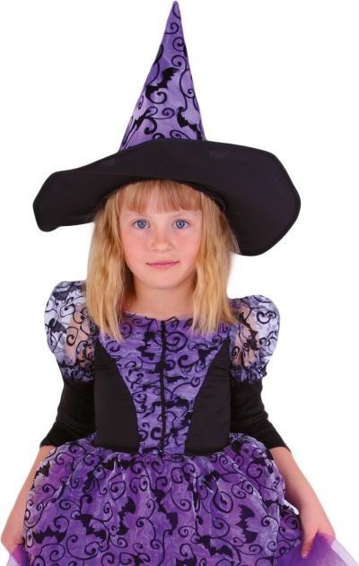 Ten fioletowo-czarny kostium czarownicy to świetny wybór dla wszystkich dziewczynek, które chcą wyglądać czarująco na Halloween lub imprezach kostiumowych. Sukienka ma wygodną, a zarazem elegancką, puszystą spódnicę oraz oryginalny motyw nietoperzy, który przyciąga uwagę każdego.