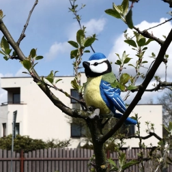 Wiernie odwzorowana sikorka z niebieskimi skrzydłami i żółtym brzuszkiem ucieszy dzieci i kolekcjonerów.