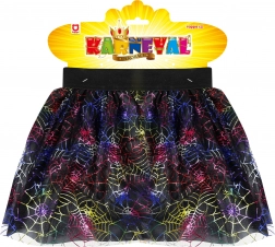 Lekka spódniczka tutu z wielobarwnym nadrukiem pajęczyn ucieszy każdą małą czarodziejkę. Dzięki elastycznej talii wygodnie się zakłada, ma długość 28 cm i jest idealna na Halloween, karnawał oraz tematyczne przyjęcia. Odpowiednia dla dziewczynek w wieku 3–7 lat.