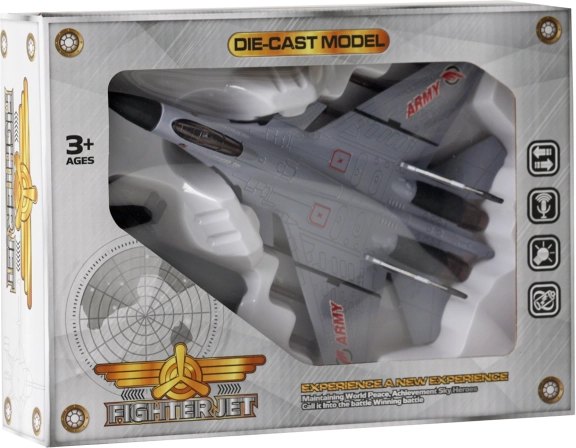 Ten szczegółowo wykonany myśliwiec łączy efekty świetlne i dźwiękowe, które wzmacniają wrażenia z zabawy i pobudzają dziecięcą wyobraźnię. Dzięki napędowi pull-back samolot po naciągnięciu sam rusza, miga i wydaje różne dźwięki.