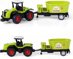 Traktor uzupełniony o odłączaną przyczepę to nie tylko doskonałe uzupełnienie dziecięcej kolekcji, ale także środek do rozwoju wyobraźni i zrozumienia działania maszyn rolniczych. Całkowita długość zestawu wynosi 18 cm, co zapewnia wygodne trzymanie i manipulację.