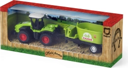 Odkryj urok prac rolniczych z naszym nowoczesnym traktorem z przyczepą z kolekcji Moja mała farma. Ten solidny sprzęt, który działa na tylne koło zamachowe, oferuje świetne możliwości zabawy i rozrywki.
