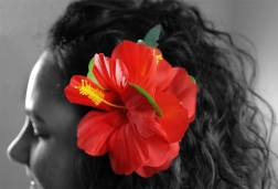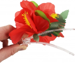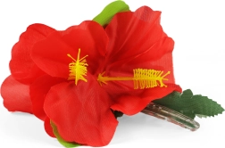 Kwiat hibiskusa wykonany z materiału tekstylnego w połączeniu z plastikiem wygląda bardzo realistycznie i ożywia każdą fryzurę.