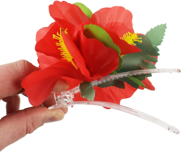 Ta kwiatowa spinka do włosów przynosi egzotykę prosto do twojego stylu. Z jej intensywnie czerwonymi kwiatami i zielonymi liśćmi staniesz się królową każdej imprezy, niezależnie czy to na plaży, hawajskim wieczorku czy przy basenie.