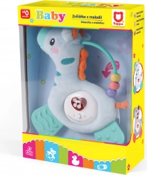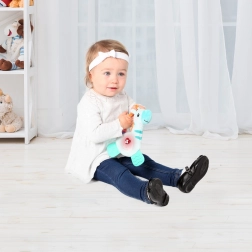 Jest wyposażona w baterie typu AG13, które są częścią zestawu, więc jest gotowa do użycia od razu po rozpakowaniu. Praktyczny klips umożliwia łatwy montaż do wózka, zapewniając, że zabawka będzie zawsze pod ręką.