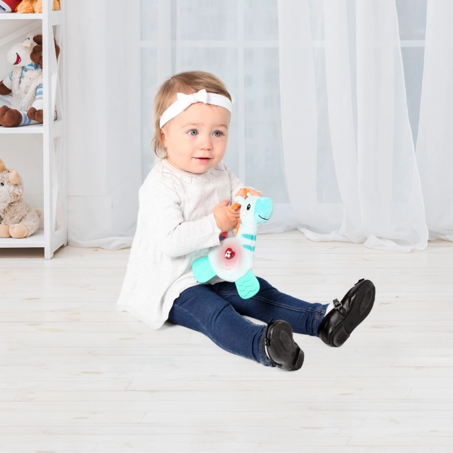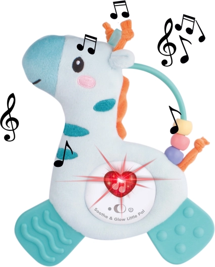 Pluszowa żyrafa jest zaprojektowana tak, aby przyciągać swoją kolorystyką i zabawnymi dźwiękami, które uruchamiają się przy naciśnięciu. Ta zabawka jest idealnym towarzyszem do dziecięcych zabaw i uspokajania.