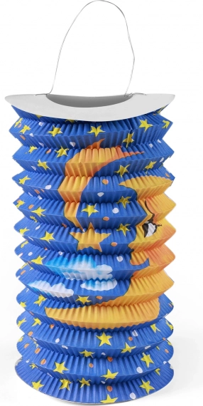 Kolorowy papierowy lampion z motywem księżyca rozświetli atmosferę każdej imprezy. Dzięki średnicy 15 cm jest idealny jako dekoracja na przyjęcia, a w dolnej części bezpiecznie umieścisz świeczkę typu tealight.