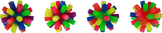 Kolce z miękkiego materiału zapewniają wygodne trzymanie i ciekawy bodziec dotykowy, co wspiera rozwój małej i dużej motoryki. Nie ma możliwości wyboru konkretnego rodzaju, opakowanie zawiera mix kolorów. Sprzedaż wyłącznie w pełnym display boxie 12 szt.