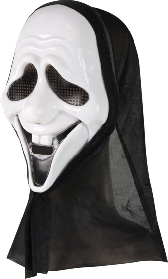 Wystrasz znajomych efektowną maską ducha z chustą, która natychmiast stworzy groźną atmosferę. Dzięki uniwersalnemu wykonaniu pasuje do większości kostiumów i gwarantuje szybkie oraz łatwe przebranie.