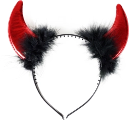 Wyraziste czerwone rogi na opasce z miękką czarną lamówką dodają wyrazistego efektu w kilka sekund – idealne do zdjęć i na imprezę.