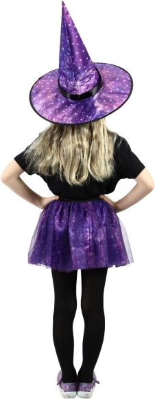 Z fioletowym kostiumem czarownicy ozdobionym gwiazdkowym dekorem Twoje dziecko będzie błyszczeć na każdej imprezie.