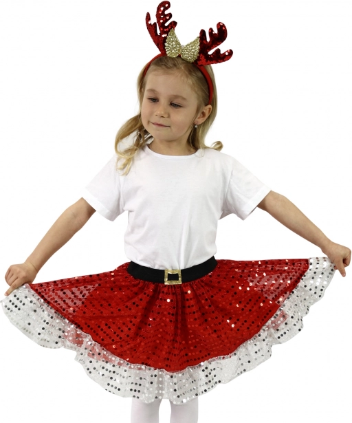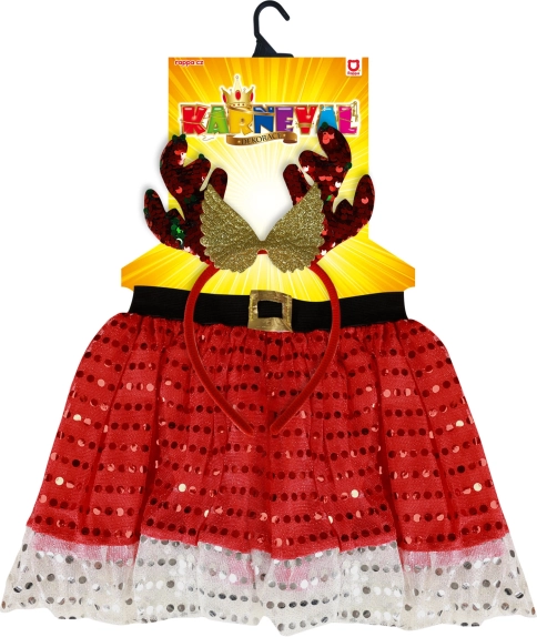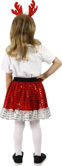 Zrób z Bożego Narodzenia niezapomniane wydarzenie z naszym dziewczęcym kostiumem świątecznym TUTU, idealnym dla małych księżniczek. Spódnica w czerwonym kolorze z białą falbanką nadaje całemu strojowi świąteczną atmosferę. Dzięki elastycznemu czarnemu paskowi dostosowuje się do każdej figury. Kostium zawiera również bajeczną opaskę z rogami renifera, która doskonale podkreśla całościowy wygląd.