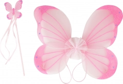 Różowe skrzydła i różdżka z motylim motywem są idealne na karnawały, przebieranki i zabawy w wróżki.