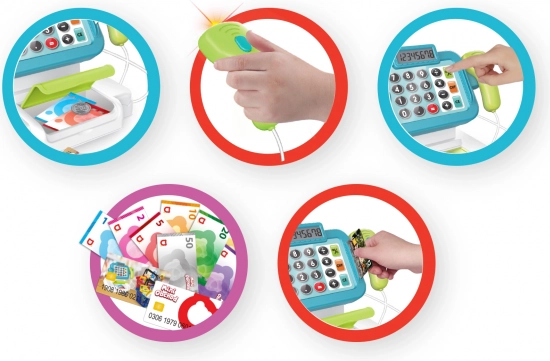 Kasa zawiera działający kalkulator oraz świetlny i dźwiękowy skaner dla jeszcze lepszych wrażeń.
