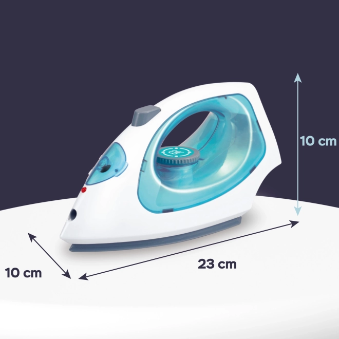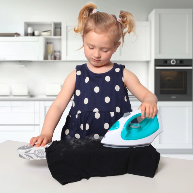 Zamień codzienne czynności w ulubioną zabawę. Dziecięce żelazko parowe w biało-turkusowym kolorze realistycznie świeci, wydaje dźwięki i po doluaniu wody z dołączonej buteleczki bezpiecznie wypuszcza parę. Idealne do zabawy z lalkami i naśladowania dorosłych.
