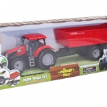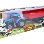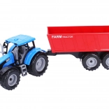 Wydajny traktor z przyczepą o długości 42 cm, idealny dla małych rolników. Napęd na koła zamachowe i otwierana tylna część przyczepy przynosi radość i realistyczną zabawę.
