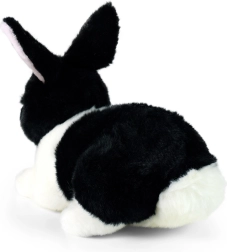 Czarno‑biały króliczek wygląda jak żywy i zachęca do przytulania dzięki wyjątkowo miękkiemu materiałowi.