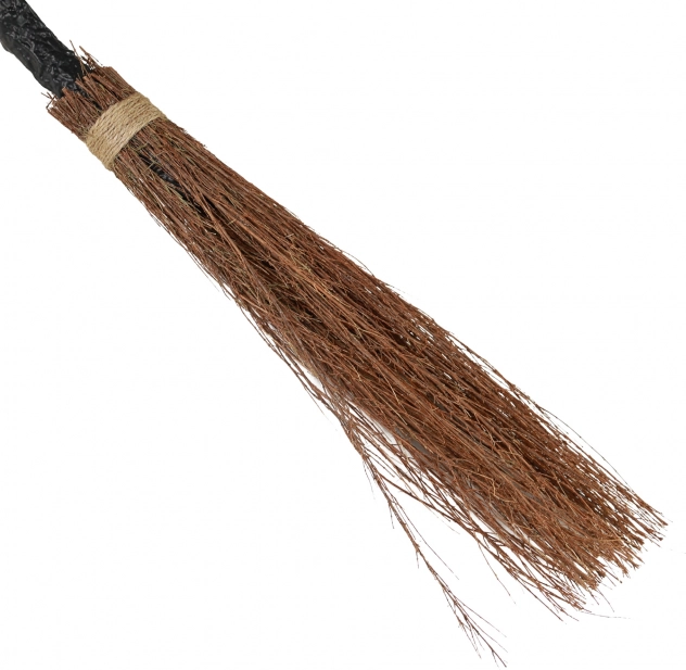 Rączka miotły wykonana jest z materiałów, które nadają jej autentyczny, drewniany wygląd.