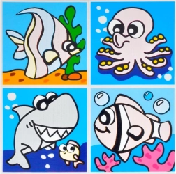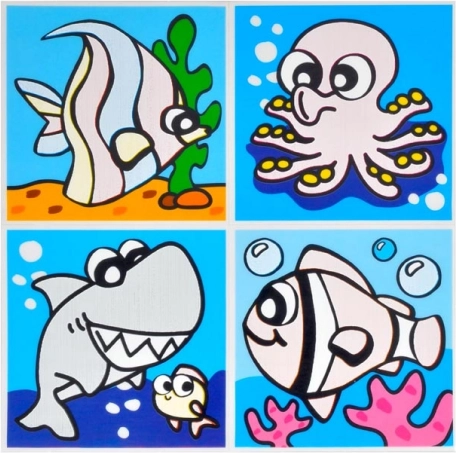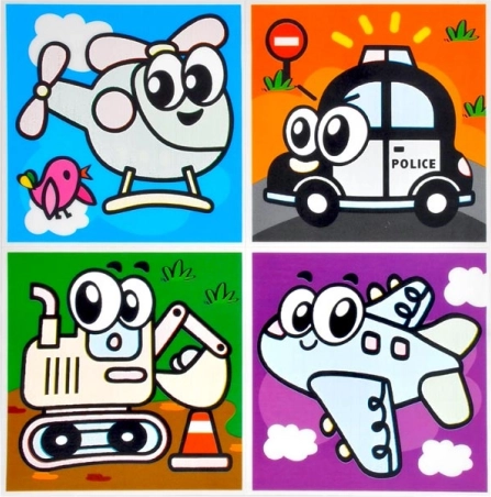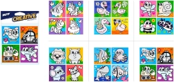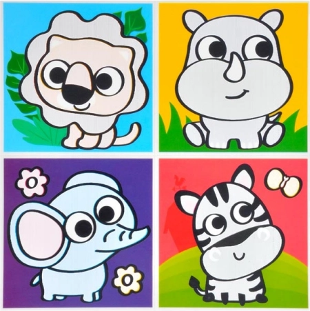 W opakowaniu znajdziesz mieszankę motywów, w tym zwierzęta i środki transportu. Każdy arkusz zawiera cztery obrazki, idealne do dziecięcej łazienki.