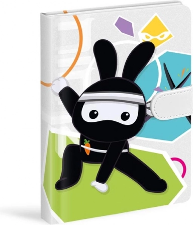 Chroń swoje notatki dzięki naszemu notatnikowi z motywem królika ninja. Zeszyt ma liniowane strony i zaokrąglone rogi, co ułatwia użytkowanie. Dzięki magnetycznemu zapięciu wszystkie Twoje zapiski pozostaną bezpiecznie zamknięte.