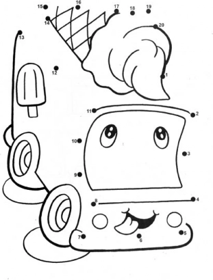 Łącząc kropki i kolorując, dzieci trenują chwyt, precyzję ruchów oraz koncentrację, co wspiera rozwój umiejętności przedszkolnych.