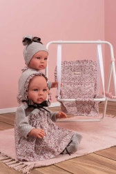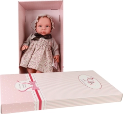 Martina ma delikatny wygląd bez włosków, wyraziste, nieruchome niebieskie akrylowe oczy i przyklejone rzęsy. Strój tworzy piękna sukienka zapinana na rzep na plecach, czapeczka wiązana pod brodą i miękkie buciki – idealny komplet do codziennej zabawy i na prezent. Rodzinna marka ASI z Hiszpanii od ponad 50 lat zajmuje się rzetelną ręczną produkcją, a jej lalkom nie brakuje dbałości o detal, jakości ani bezpieczeństwa.