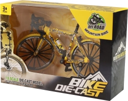 Miniaturowy żółty rower górski to świetny wybór dla dzieci, które kochają akcję i ruch, a także dla dorosłych kolekcjonerów. Dzięki wolnemu biegowi kół łatwo rusza i płynnie jedzie po równej powierzchni. Realistyczne wykonanie doskonale prezentuje się na półce i podczas zabawy.