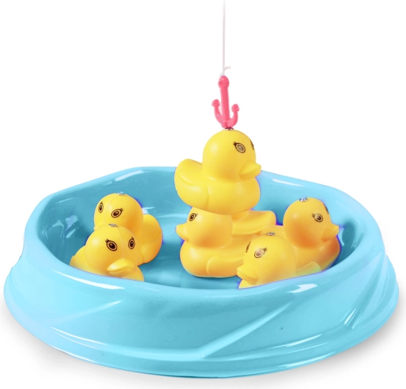 - Kompletny zestaw – wędka z magnesem, plastikowy stawik i 6 kaczuszek