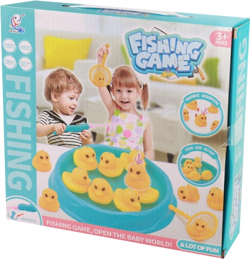 - 1× magnetyczna wędka, 1× plastikowy mini stawik, 6× kaczuszka z magnesem