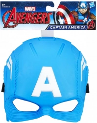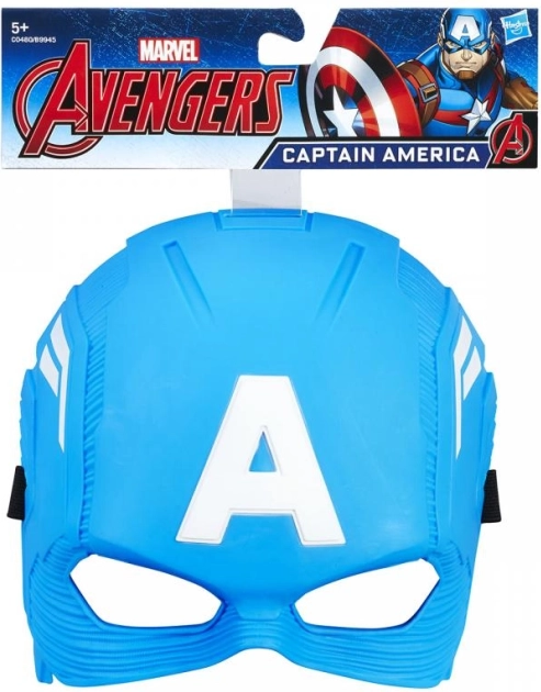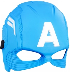 Niebieska maska Kapitana Ameryki z ikoniczną literą 'A' na czole przenosi cię do walki o sprawiedliwość.