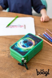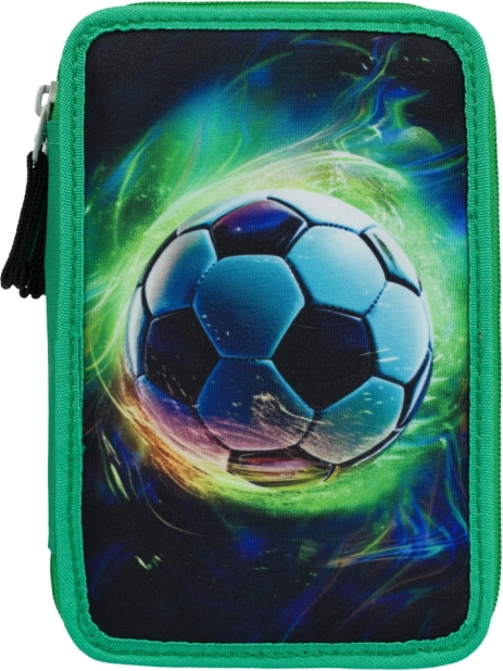 Trzypoziomowy piórnik szkolny z motywem piłki nożnej oferuje