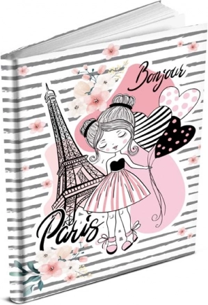 Ten pamiętnik z motywem Paryża jest idealny dla miłośników podróży. Okładka zawiera motywy Paryża wśród kwiatów i serc.