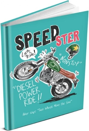 Dla miłośników motocykli ten pamiętnik jest idealny. Motocykl na okładce uzupełniony napisami jak 'SPEEDSTER' i 'Two Wheels Move the Soul'.
