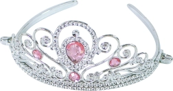 Piękna korona z różowymi kamieniami i detalami z delikatnego metalu jest lekka i wygodnie leży na głowie każdej księżniczki.