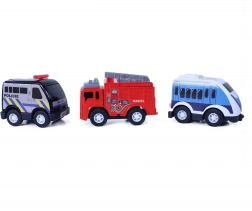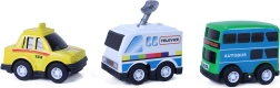 - 3 mini samochodziki: Idealna wielkość dla małych dziecięcych rączek.