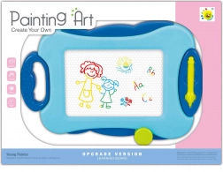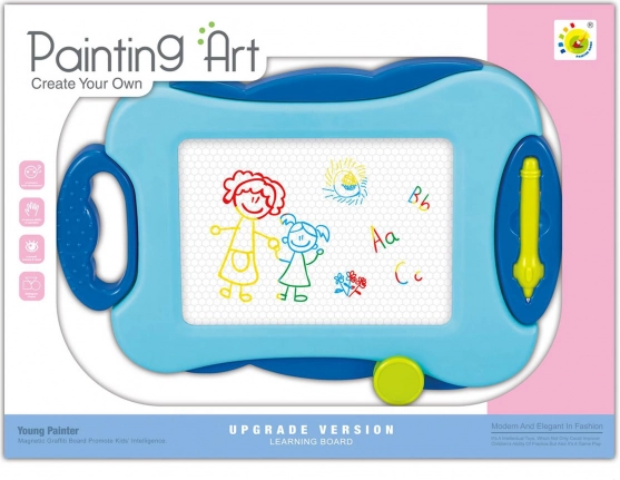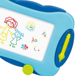 Ta magnetyczna tablica do rysowania to idealne narzędzie dla małych artystów. Dzięki dołączonemu magnetycznemu ołówkowi dzieci mogą bezpiecznie i bez tuszu czy kredek rysować według własnej wyobraźni. Przesunięciem przesuwanej gumki łatwo i szybko usuniesz rysunki, a tablica jest natychmiast gotowa na nowe pomysły.