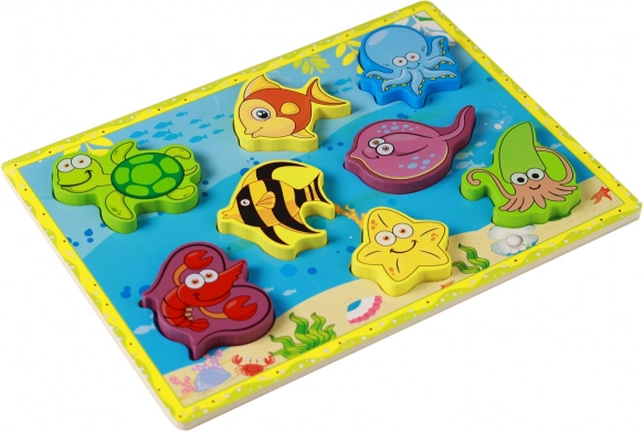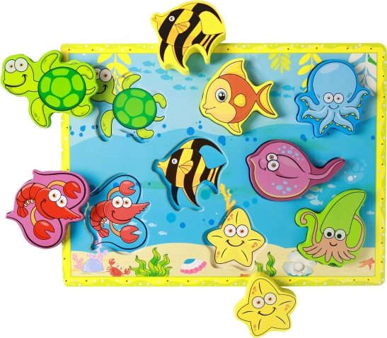 Odkryj urok podwodnego świata z tą wysokiej jakości drewnianą układanką dla najmłodszych. Kolorowe elementy morskich zwierzątek wspierają rozpoznawanie kształtów i kolorów, rozwijają małą motorykę oraz koordynację oko–ręka, a dziecko w przyjazny sposób trenuje koncentrację i myślenie logiczne.