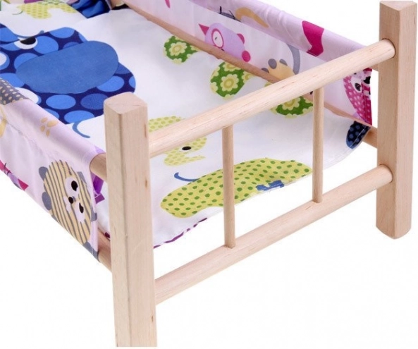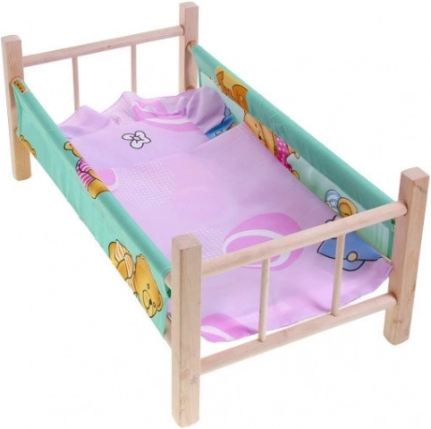 drewniane łóżeczko dla lalek o maksymalnej wysokości 50 cm to doskonały dodatek dla każdej małej mamy. Łóżeczko wykonane jest z naturalnego, nielakierowanego drewna z materiałowymi bokami i podkładem. W zestawie znajduje się także poduszka i kołderka, idealne dla lalki lub misia.