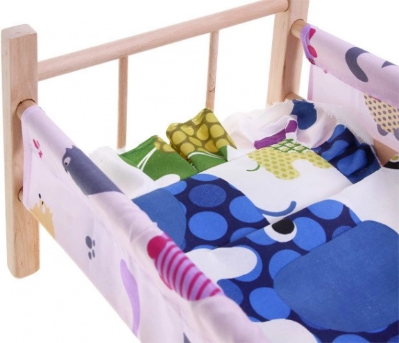 Każda lalka lub miś będą chętnie spać w takim łóżeczku. Dzieci uwielbiają opiekować się swoimi zabawkami, a dzięki temu łóżeczku poczują się jak prawdziwi rodzice. Łóżeczko nie jest sprzedawane z lalką widoczną na zdjęciach. Wzór i kolory pościeli mogą różnić się od przedstawionych na obrazkach.