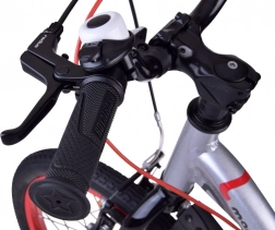 Połączenie przedniego hamulca szczękowego i tylnego tarczowego zapewnia mocne i płynne hamowanie. Ergonomiczne klamki są dopasowane do dziecięcych dłoni.