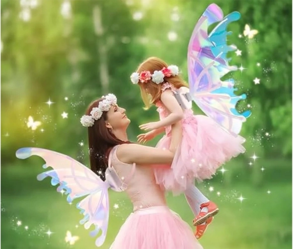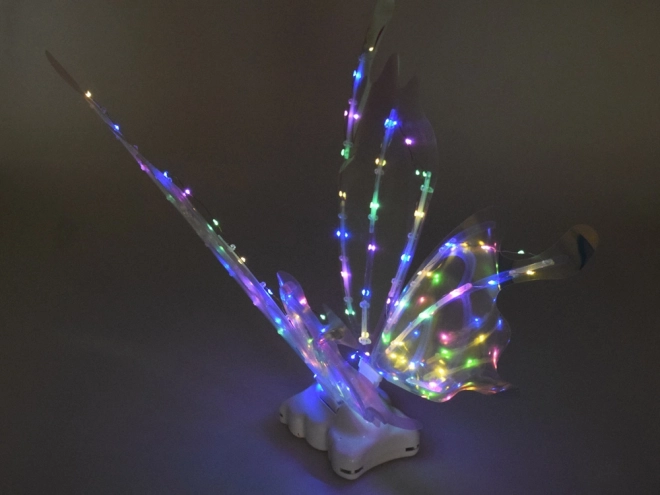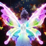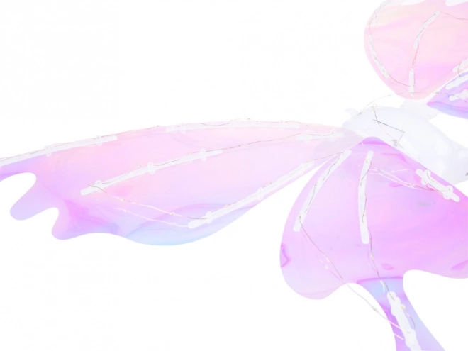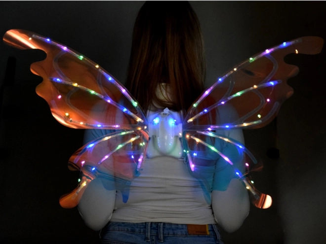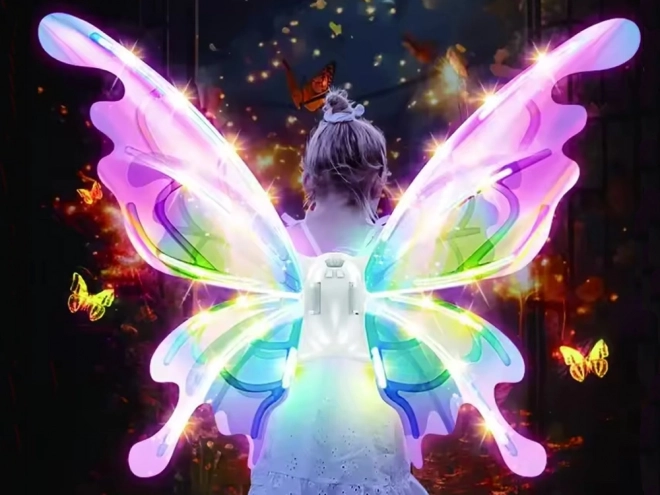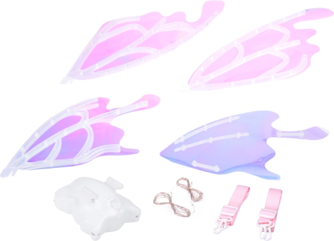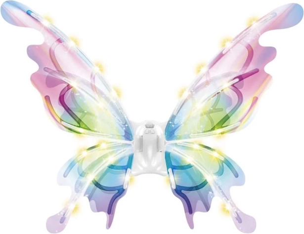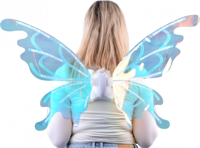 Te magiczne dziecięce skrzydła naśladują duże skrzydła motyla, które w zależności od kąta padania światła pięknie błyszczą i zmieniają kolory. Zintegrowane oświetlenie LED oraz mechaniczny ruch skrzydeł tworzą efektowny pokaz, który zachwyci każdą małą wróżkę, elfa i motylka.