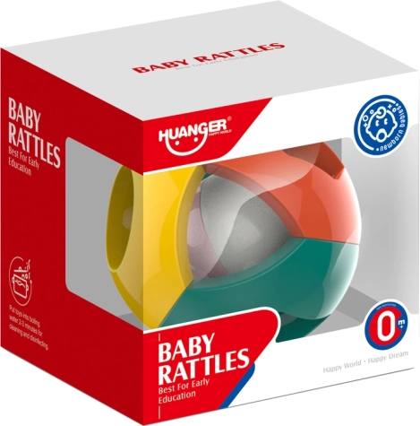 Wesoła grzechocząca piłeczka dla najmłodszych wspiera rozwój zmysłów, chwyt i koordynację ręka–oko. Lekka, łatwa do uchwycenia i bezpieczna dzięki zaokrąglonym krawędziom. W środku ukryta jest mała kuleczka, która podczas ruchu przyjemnie grzechocze, a po bokach znajdują się otwory w kształcie figur geometrycznych dla zabawnego odkrywania. Odpowiednia od 0 miesięcy, z certyfikatem CE i zgodna z normą EN 71.