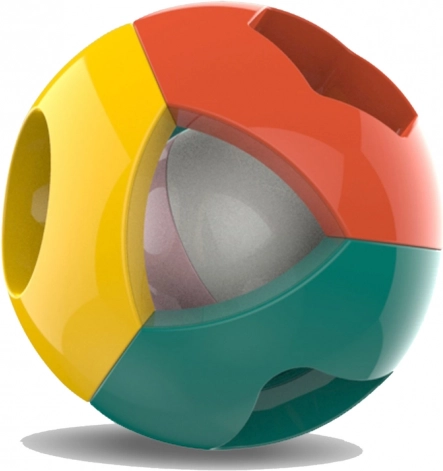 Po bokach piłeczki znajdują się otwory w kształcie trójkąta i sześciokąta, które rozwijają percepcję wzrokową i pomagają dzieciom poznawać podstawowe kształty. Zaokrąglone krawędzie zapewniają bezpieczną zabawę i przyjemny chwyt. Zabawka jest odpowiednia od urodzenia, spełnia normę EN 71 i posiada certyfikat CE, dlatego doskonale sprawdzi się także jako prezent.