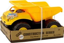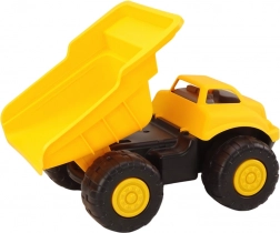 Duża wywrotka dla dzieci to świetna zabawka, która zapewni godziny kreatywnej i angażującej zabawy na zewnątrz i w domu. Pojazd ma żółty kolor, który przyciąga uwagę i nadaje mu realistyczny wygląd. Wywrotka jest wyposażona w duże czarne koła zapewniające stabilność i łatwe poruszanie się po różnych nawierzchniach, takich jak trawa, piasek czy dywan.