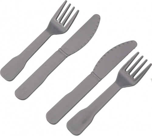 - Zawartość opakowania: pizza (4 kawałki) z radełkiem i łopatką, frytki, stek, jajko, owoce, 2 lody, 3 desery, talerz, miska, taca, 2 widelce, 2 noże.